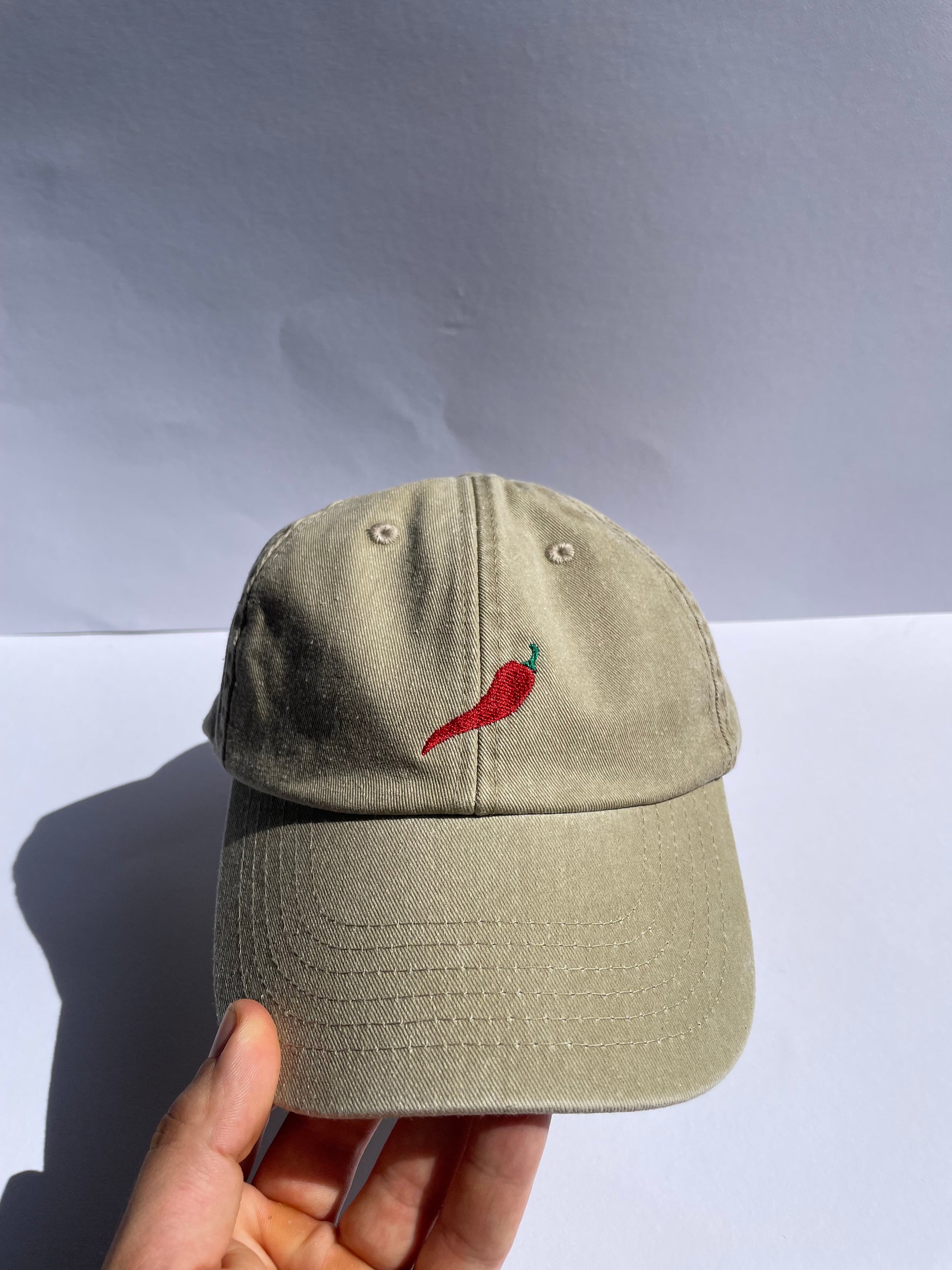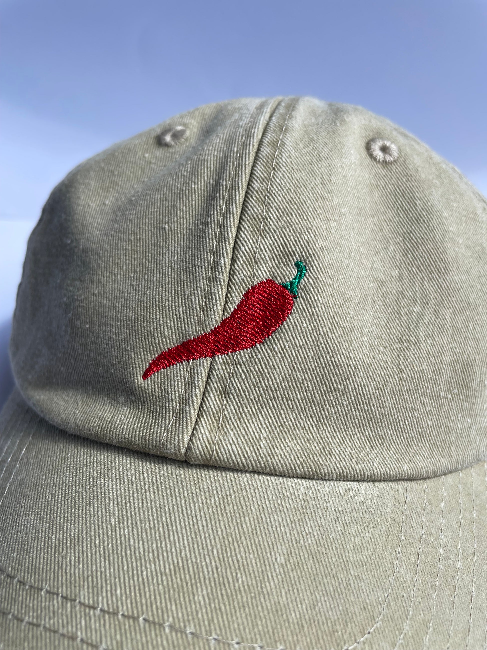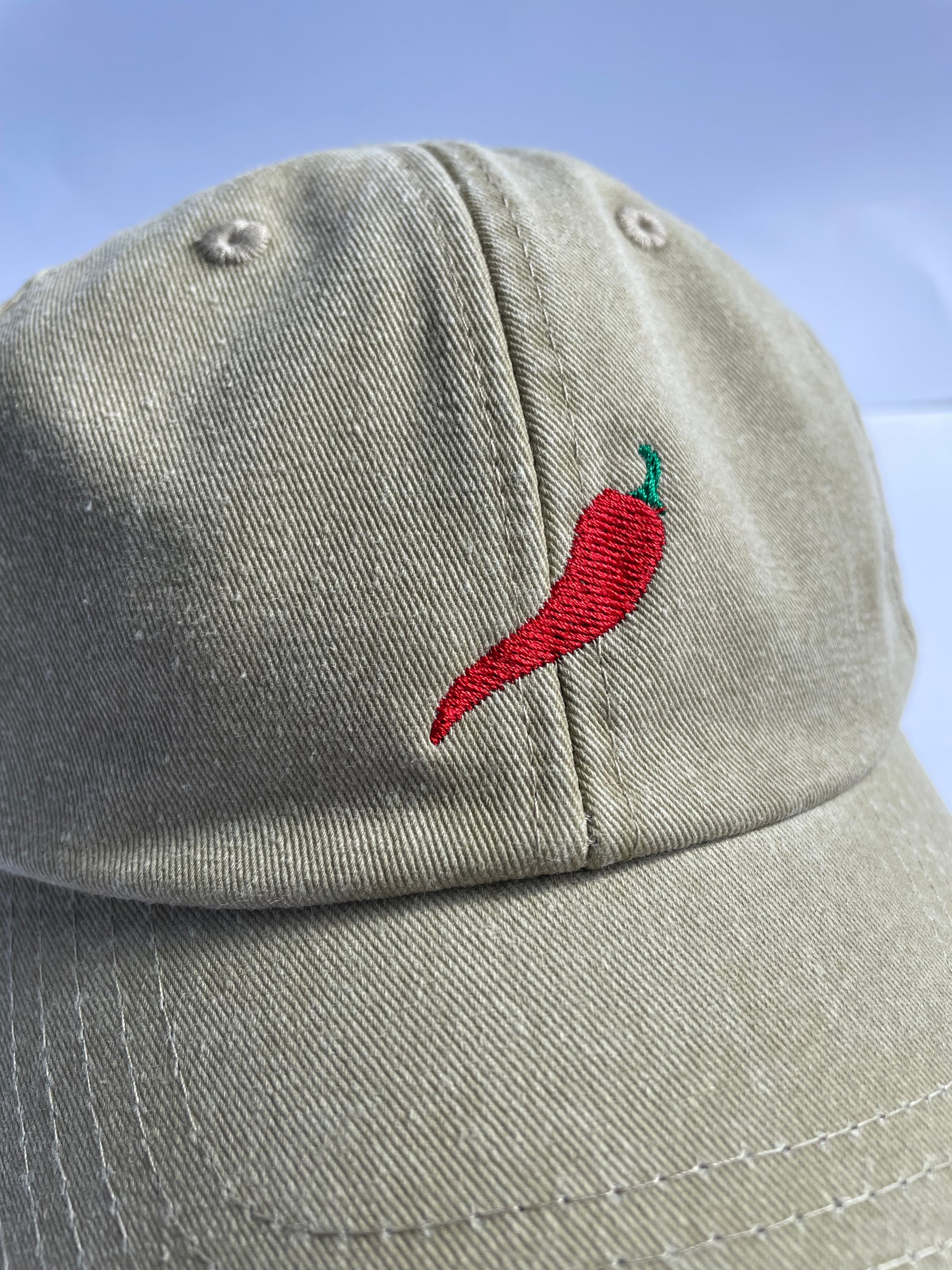 Scharfes Detail, lässiger Look. Die Vintage-Stone Cap mit gestickter Chili kombiniert Used-Style mit cleanem Statement. 100 % gewaschene Baumwolle, weiche Krone und verstellbarer Riemen im Messing-Look machen sie zum perfekten Daily-Piece – egal ob Street, Sommer oder Festival.