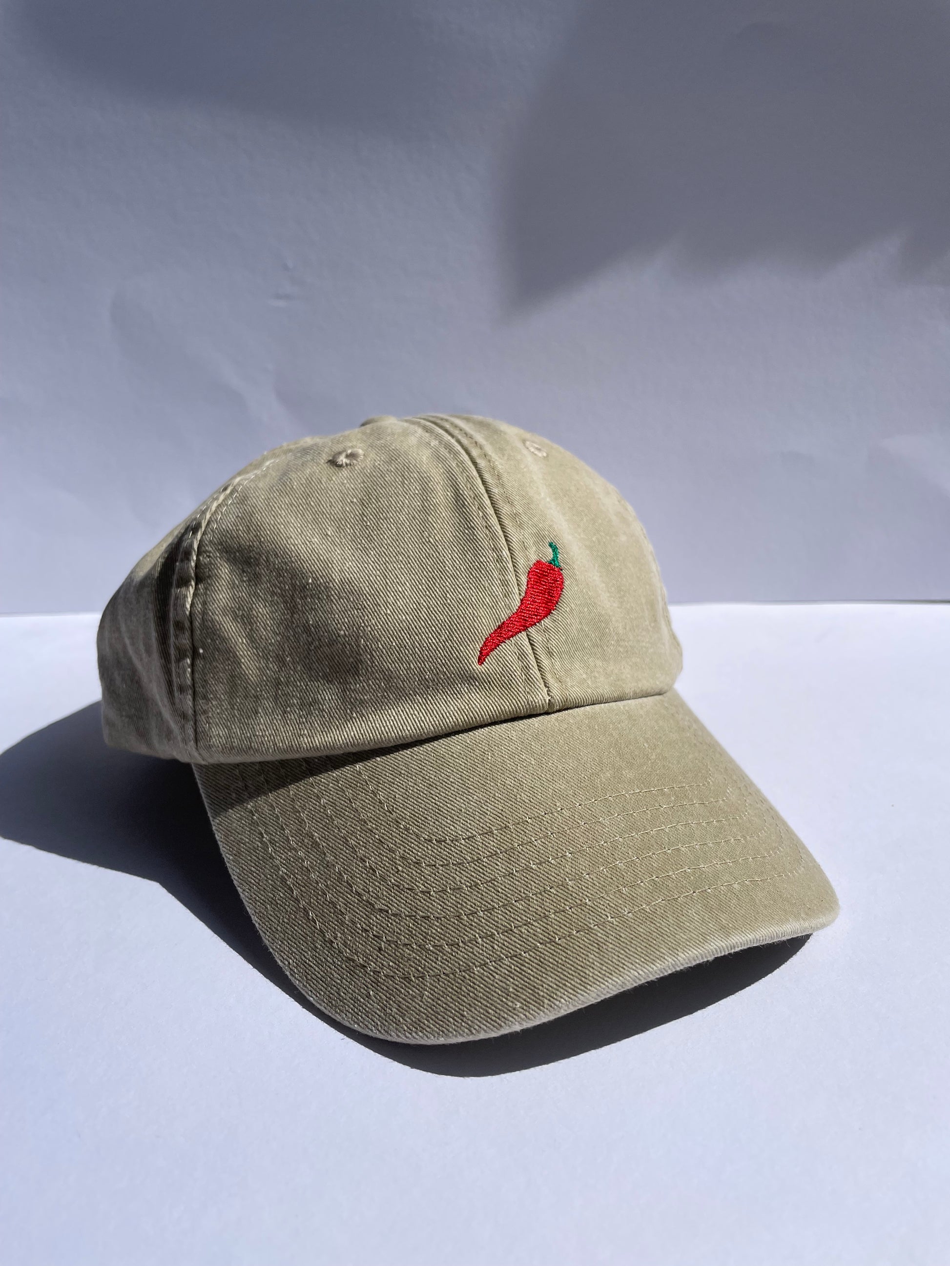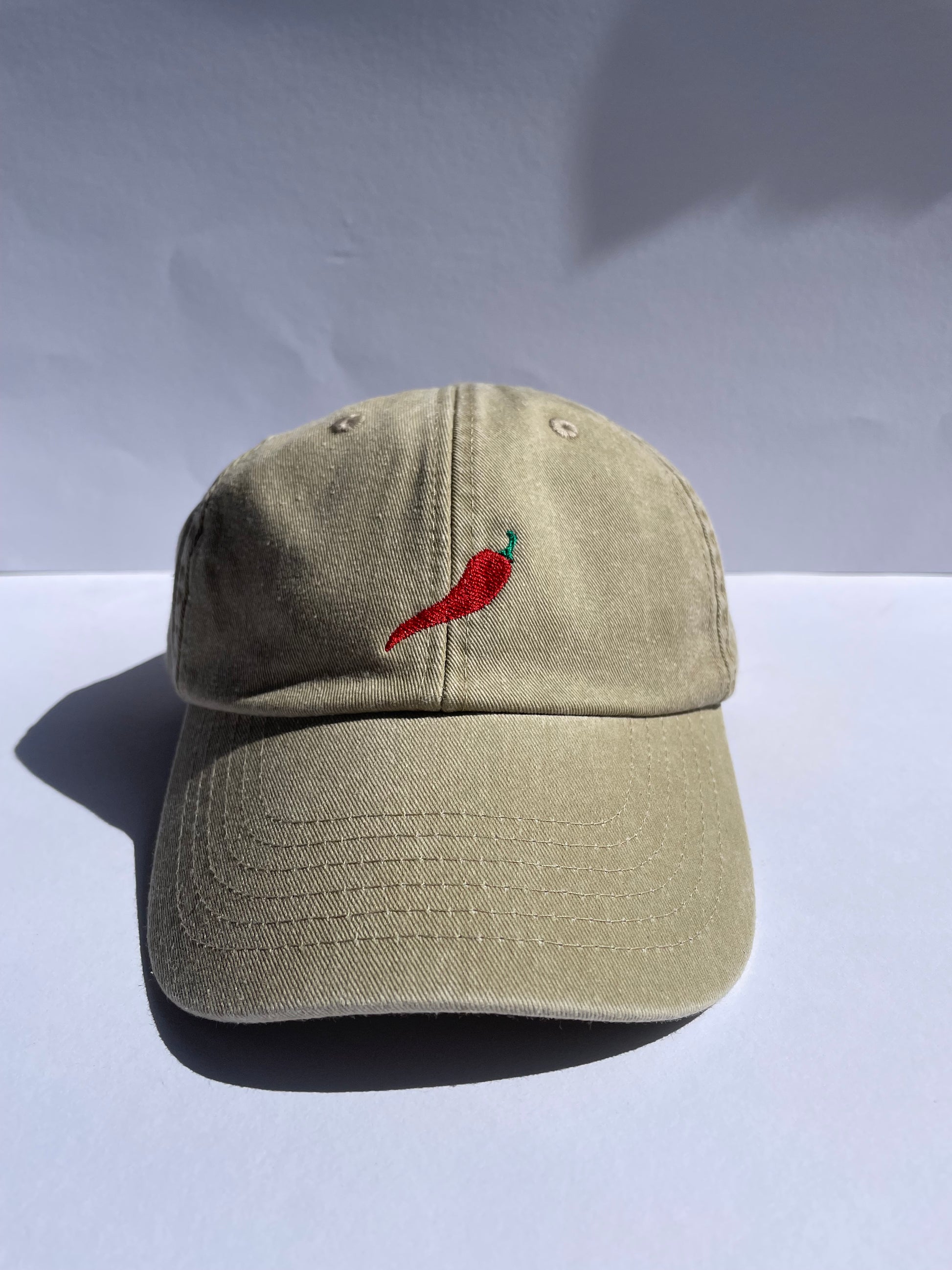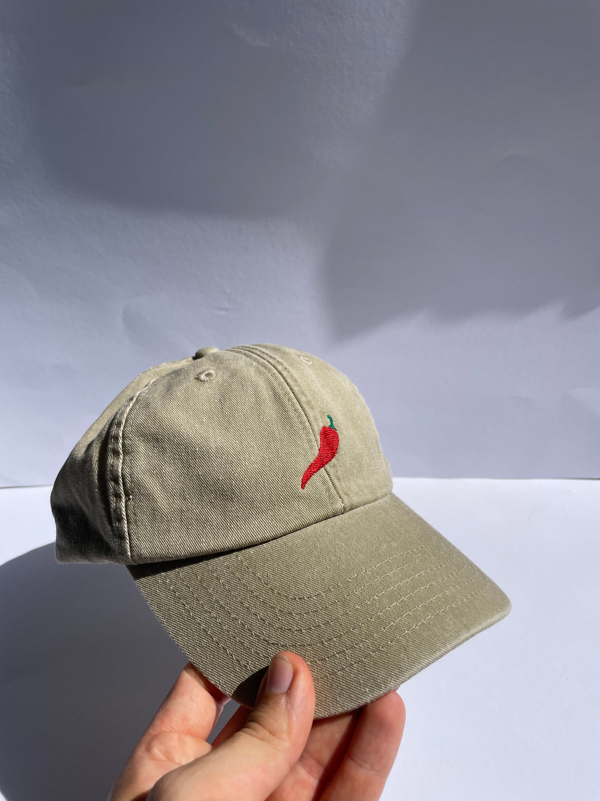 Scharfes Detail, lässiger Look. Die Vintage-Stone Cap mit gestickter Chili kombiniert Used-Style mit cleanem Statement. 100 % gewaschene Baumwolle, weiche Krone und verstellbarer Riemen im Messing-Look machen sie zum perfekten Daily-Piece – egal ob Street, Sommer oder Festival.